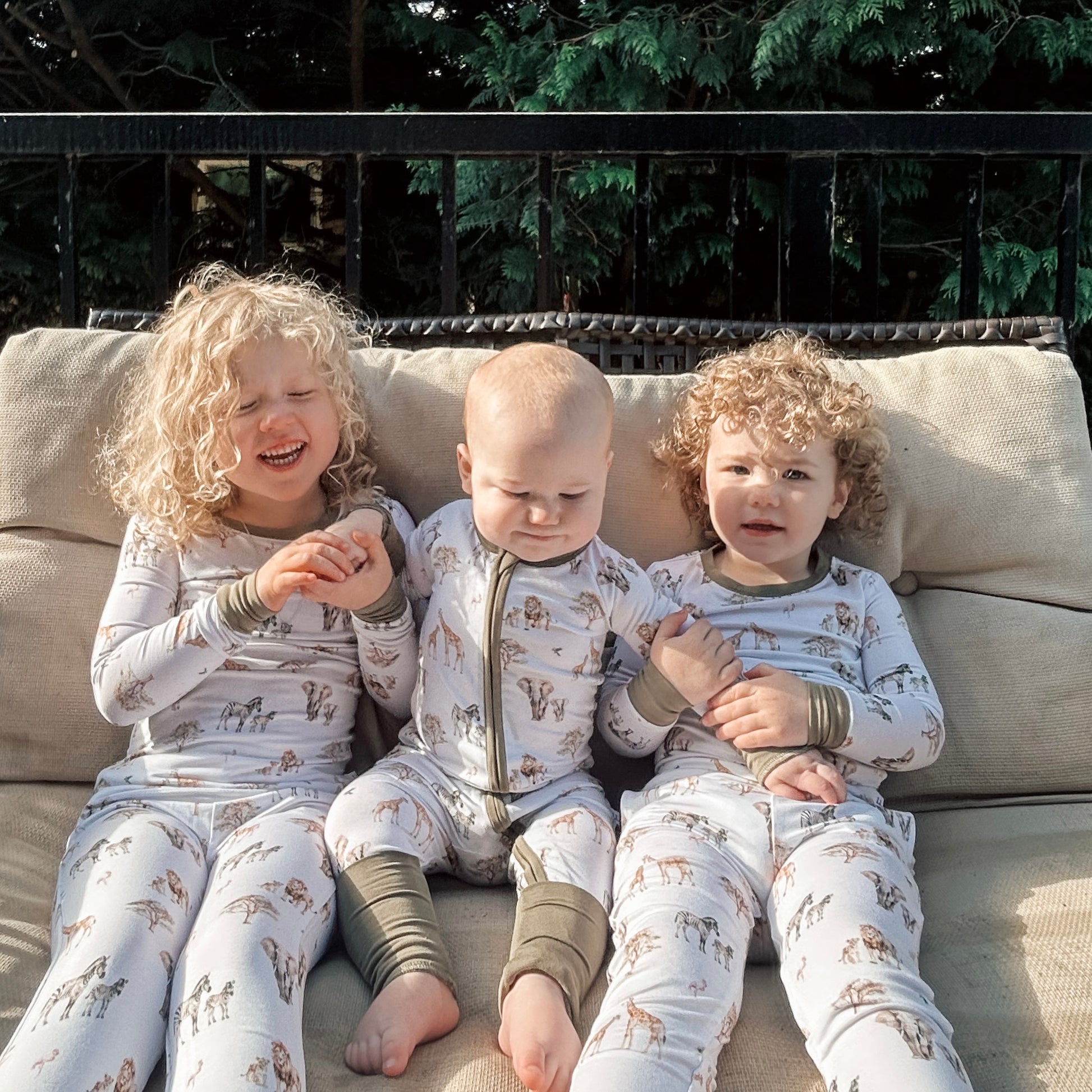 Let your little explorer drift off on a dreamy safari through the animal kingdom. Set on a neutral background with deep olive accents, these wild animals are simply stunning.