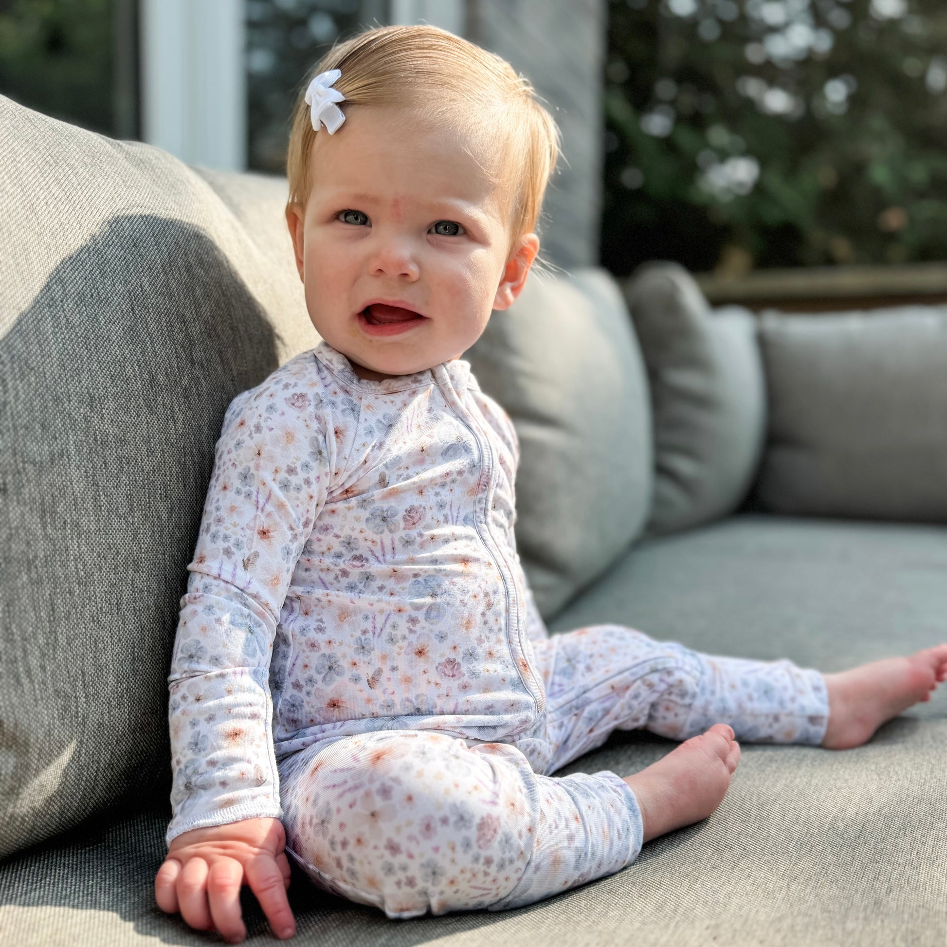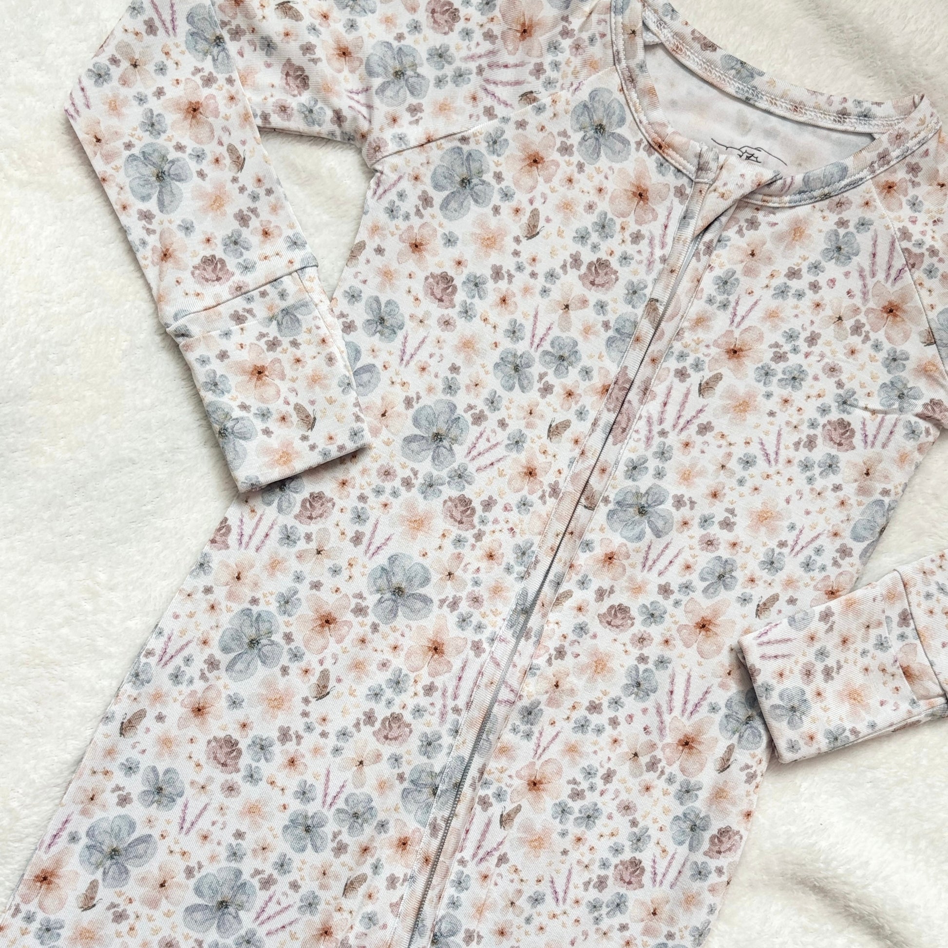 Delicate and dreamy, like a field of wildflowers. Ivy stands out with pops of mauve, baby blue and soft pastel peach.