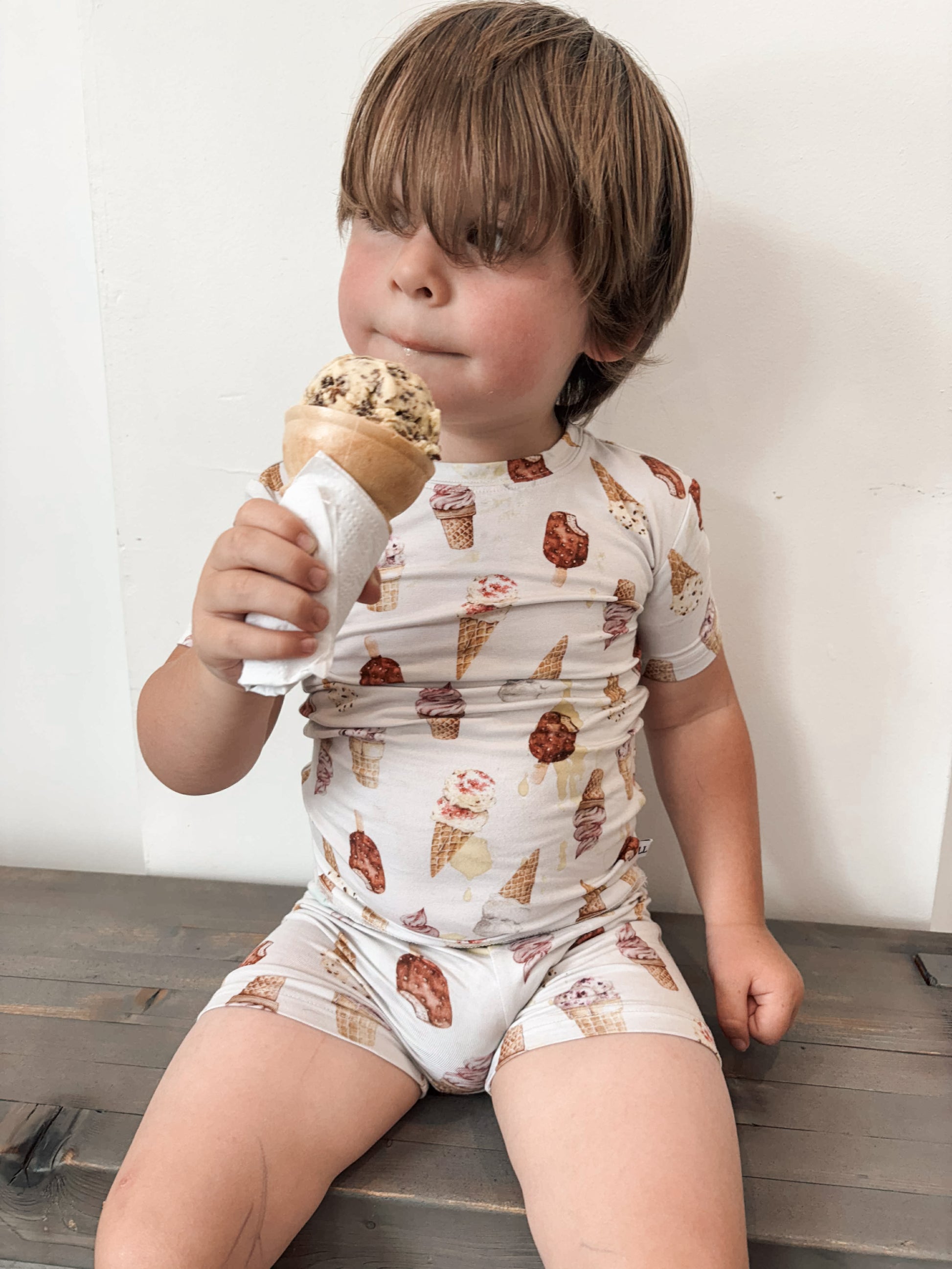 Sweet dreams are made of ice cream! This gender neutral, summer must have features watercolour cones scattered on a creamy base with hints of rich browns and soft pastels throughout.