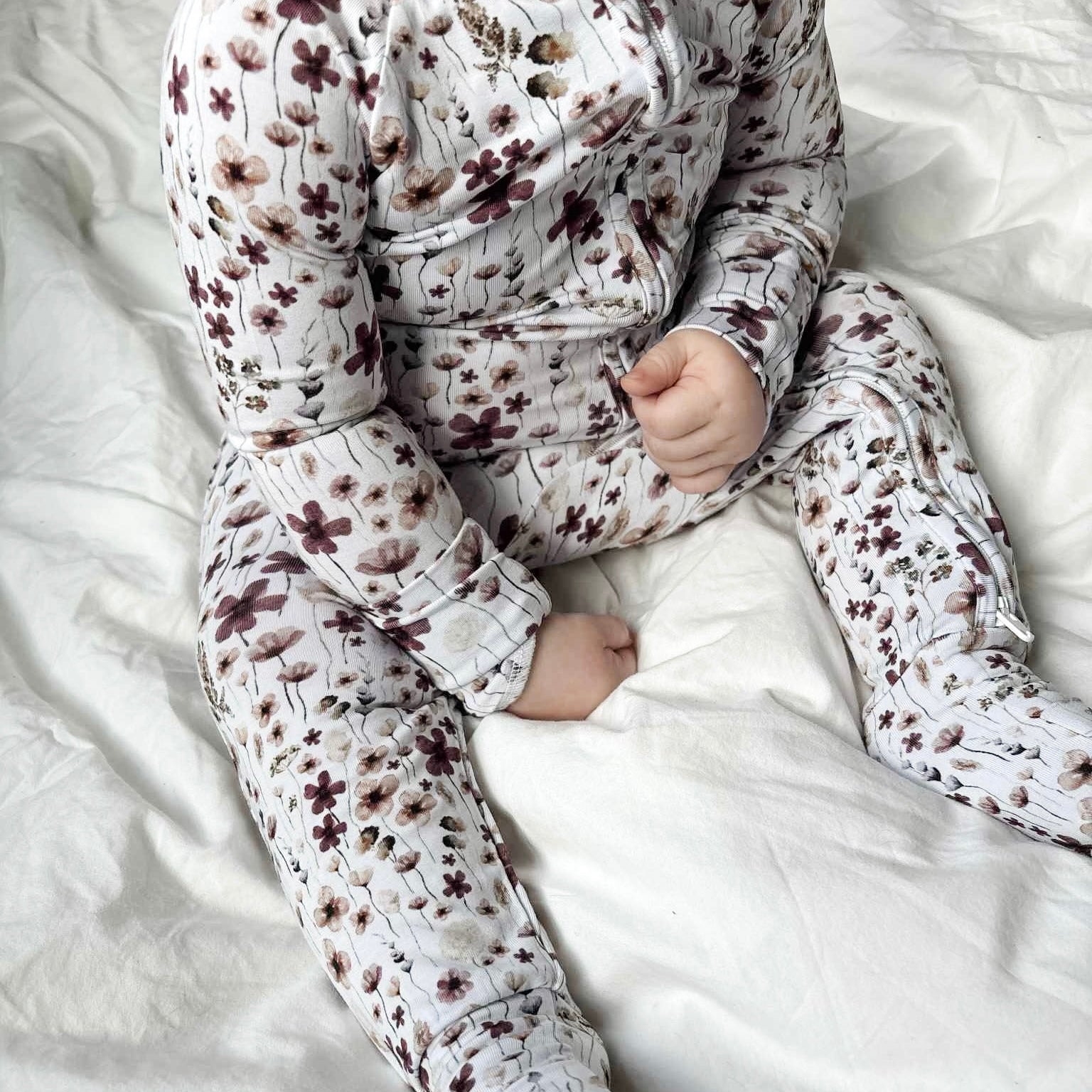 Dainty and moody, Isabel is the perfect floral! Neutral beige and brown tones accentuated by rich plum and stormy blue.